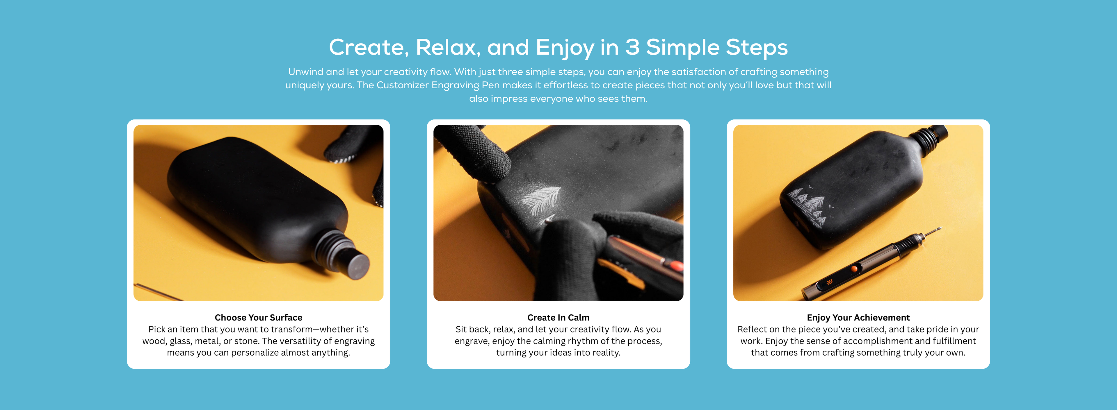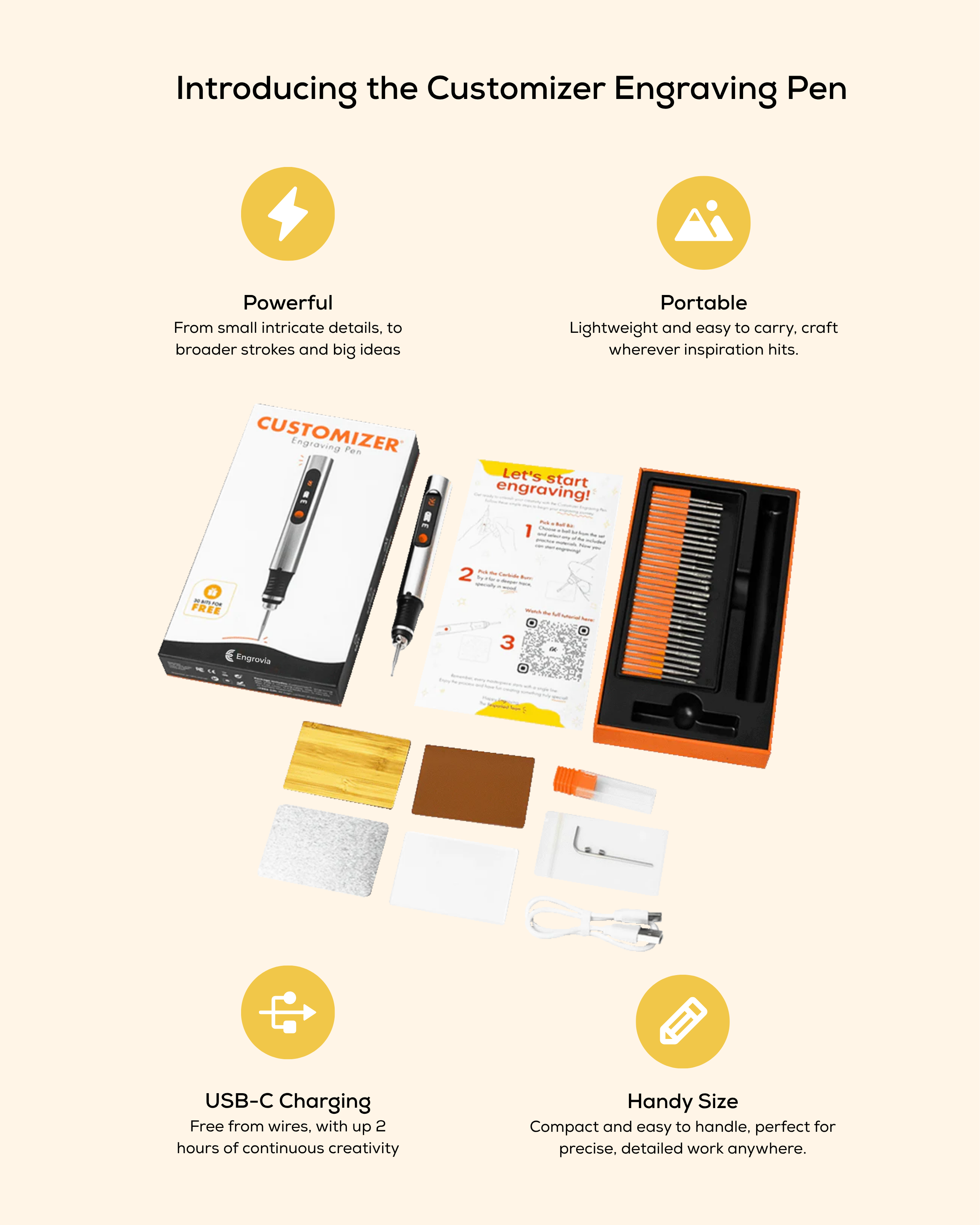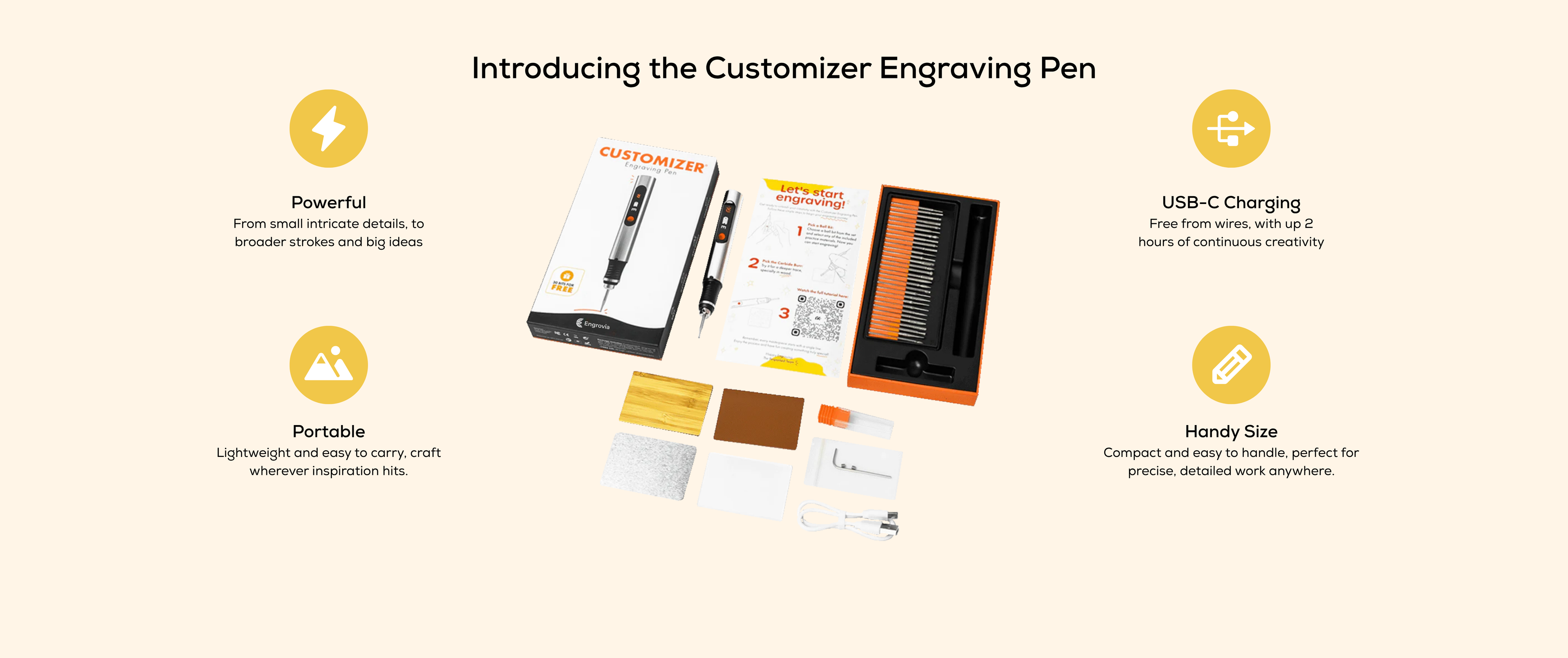 The Customizer stands out for its precision, ease of use, and versatility. Its lightweight design ensures comfortable handling, while the high-quality build delivers smooth, accurate results every time. It’s also more affordable than most rotary tools without compromising performance — making it a smart choice for anyone who values quality, creativity, and convenience.